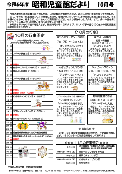 今月のなかよし広場はハロウィン工作です。ぜひご参加ください。